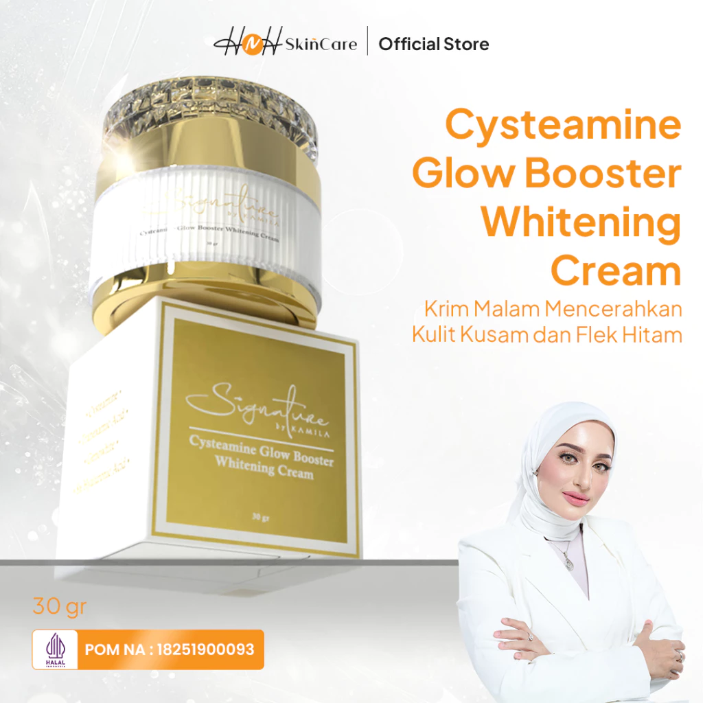 Signature by Kamila Cysteamine Glow Booster Whitening Cream 30 mg – Krim Malam dengan Cysteamine untuk Mencerahkan dan Menyamarkan Noda Hitam